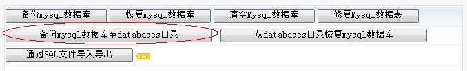 首先在虛擬主機(jī)管理面板左側(cè),點(diǎn)擊“數(shù)據(jù)庫(kù)”,進(jìn)入數(shù)據(jù)庫(kù)管理頁(yè)面,點(diǎn)擊“備份mysql數(shù)據(jù)庫(kù)至databases目錄”。