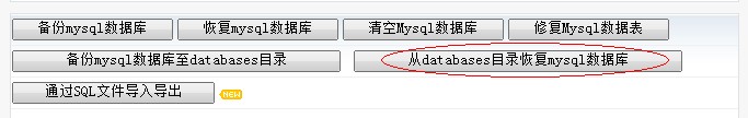 等數(shù)據(jù)都上傳到新的主機(jī)后,在新的虛擬主機(jī)管理面板左側(cè),點(diǎn)擊“數(shù)據(jù)庫(kù)”,進(jìn)入數(shù)據(jù)庫(kù)管理頁(yè)面,點(diǎn)擊“從databases目錄恢復(fù)