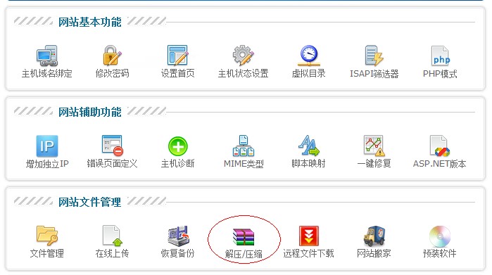 c)文件下載完畢后,進(jìn)入主機(jī)管理中的“壓縮/解壓”(圖3)