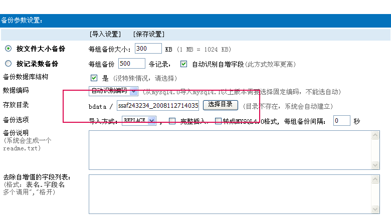 當(dāng)參數(shù)設(shè)置成功后,點(diǎn)擊“帝國(guó)備份”左側(cè)的“備份數(shù)據(jù)”,將會(huì)進(jìn)入“備份參數(shù)設(shè)置”頁(yè),此時(shí)參數(shù)雖多,但幾乎您不需要更改任何東西,