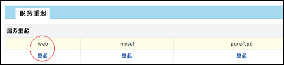 點(diǎn)擊“系統(tǒng)管理”——“服務(wù)重起”,選擇“web”服務(wù)重啟。如圖: