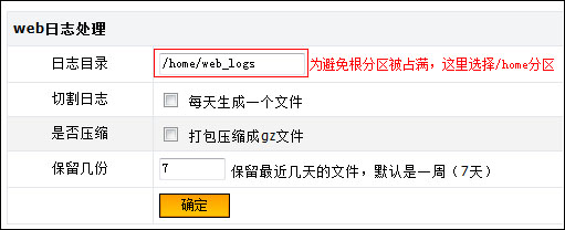 如果您站點(diǎn)較多,可以查詢(xún)是哪個(gè)網(wǎng)站導(dǎo)致流量過(guò)大,比較麻煩,流程如下: 系統(tǒng)默認(rèn)沒(méi)有建立日志目錄,打開(kāi)“系統(tǒng)設(shè)置”——“系統(tǒng)設(shè)置”,在“web日志處理”設(shè)置一個(gè)日志目錄,建議設(shè)置為/home/web_logs ,點(diǎn)擊確定。如圖: