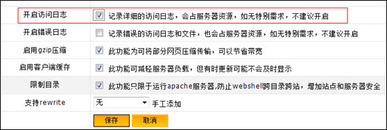 登錄wdcp管理系統(tǒng),打開(kāi)“網(wǎng)站管理”——“站點(diǎn)列表”,點(diǎn)擊操作那的“編輯”。在“開(kāi)啟訪(fǎng)問(wèn)日志”后打鉤,點(diǎn)擊“保存”,如圖: