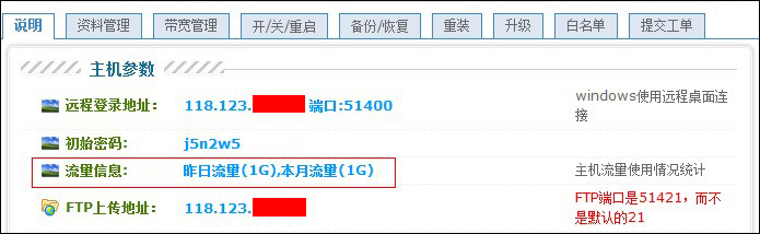 登錄獨立控制面板(www.myhostadmin.net),也可以查看到流量的使用情況。增加流量價格為:50元/5G。