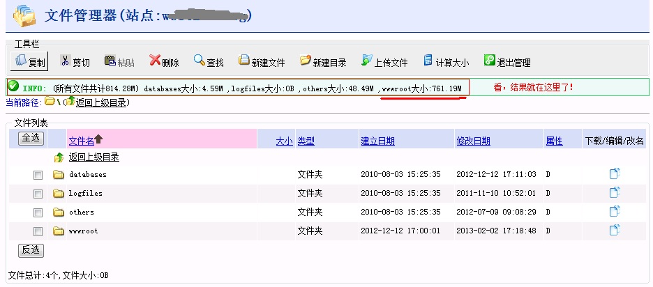 虛擬主機(jī)空間超標(biāo)目錄文件占用大小查看方法