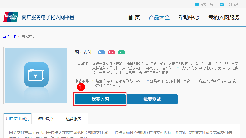 設(shè)置銀聯(lián)在線接口設(shè)置銀聯(lián)在線接口 特別需要注意 需要銀聯(lián)有兩個(gè)接口,一定要向銀聯(lián)客服說(shuō)明需要unionpay 接口 1、訪問(wèn) https://merchant.unionpay.com/join/product/detail?id=1 點(diǎn)擊我要入網(wǎng)