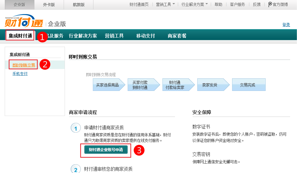 財(cái)付通即時(shí)到賬交易