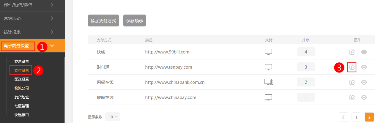 2、依次點(diǎn)擊 電子商務(wù)設(shè)置-》支付設(shè)置-》財(cái)付通