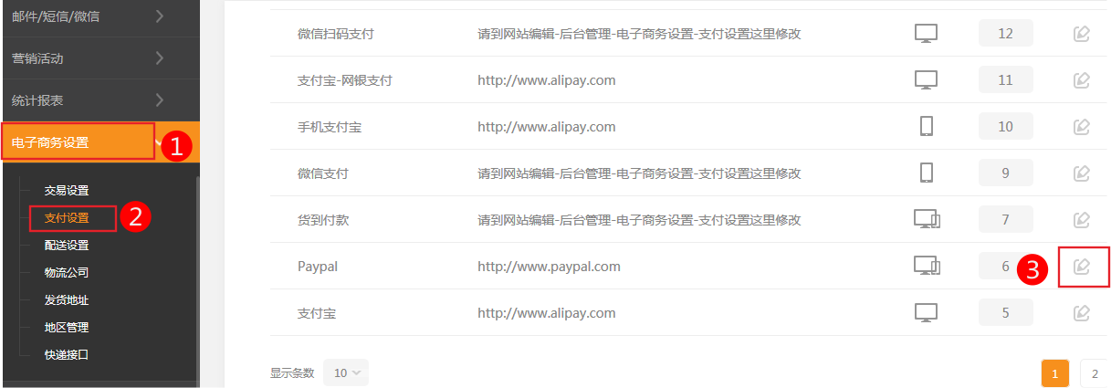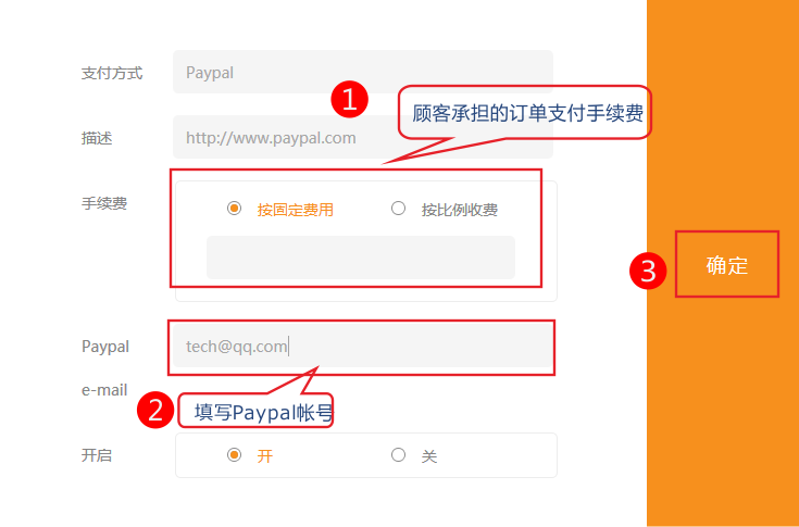 2、設(shè)置PAYPAL接口流程 1.依次 點(diǎn)擊 后臺(tái)管理-電子商務(wù)設(shè)置-支付設(shè)置-編輯貝寶 2.設(shè)置支付手續(xù)費(fèi),填寫(xiě)paypal 帳號(hào)保存