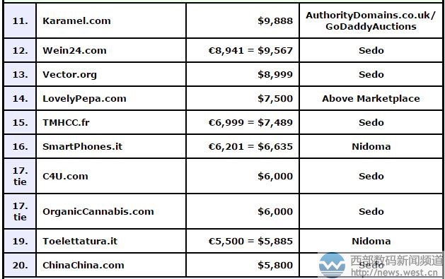 DN榜:兩數(shù)字域名20.com千萬元奪冠!兩雜域名J5.COM賣出六位數(shù)!