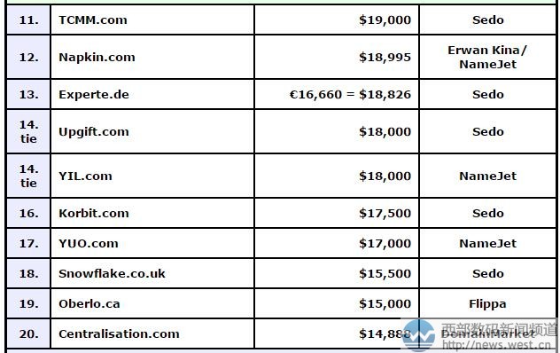 排在第三和第四的是兩個四數(shù)字域名1003.com和1227.com,成交價分別為45,000美元和35,000美元。這兩個域名都屬于ABBC型域名,字符簡短,品相又好,廣泛適用于金融、游戲、體育、導航等多個領域。