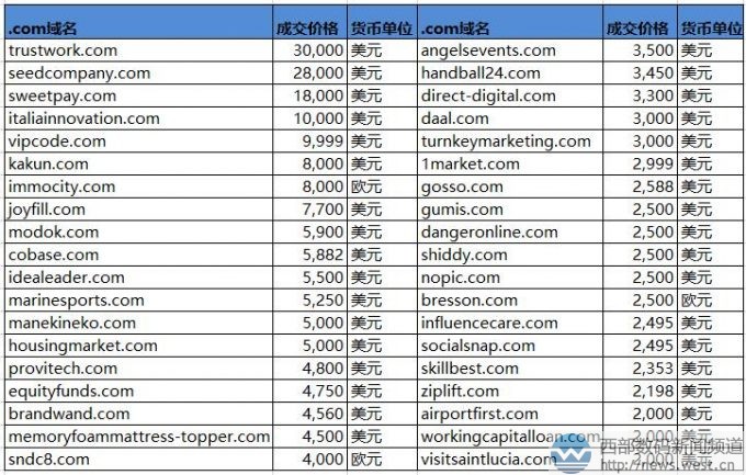 Sedo榜:“工作”類域名以20萬元領(lǐng)銜!3個新頂級域名表現(xiàn)搶眼!西部數(shù)碼(west.cn)7月19日消息,最新一期的sedo交易榜出爐,本期上榜的域名共有65個,其中賣價最貴的是英文域名trustwork.com,成交價為30,000美元,約合人民幣20萬元。