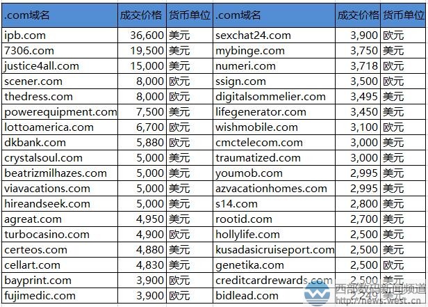 三字母ipb.com六位數(shù)領(lǐng)跑Sedo榜!數(shù)字域名7306.com緊隨其后西部數(shù)碼(west.cn)8月23日消息,最新一期的sedo交易榜出爐,本期上榜的域名共有57個,其中賣價最貴的是三字母域名ipb.com,成交價為36,000美元,約合人民幣24萬元。
