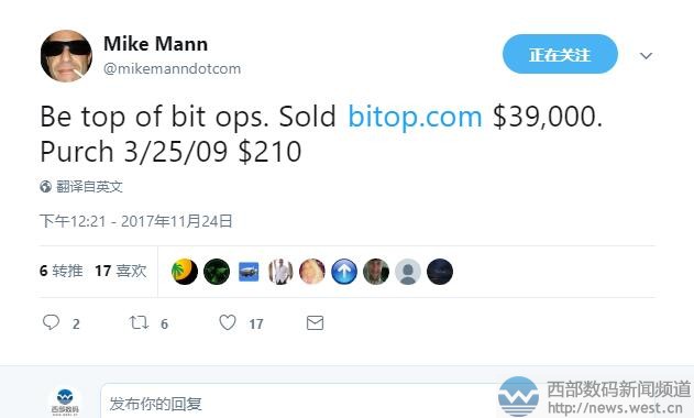 比特幣的風大佬也要跟!Mike Mann超25萬元出售域名bitop.com西部數(shù)碼(west.cn)11月27日消息,比特幣的這把火已經(jīng)持續(xù)燒了很長時間了,光是今年以來,相關(guān)域名就跟著水漲船高,不少投資人因此獲利頗豐。當然域名圈最會銷售域名的人也不例外,上周五Mike Mann就以39000美元出售了域名bitop.com,約合人民幣25.7萬元。