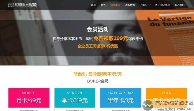 Mobook.VIP主要在小區(qū)居民周圍500米鋪設智能書柜,用戶交取77元的押金,即可自動借還書。第1天免費,以后每天按圖書定價的2%計費,最低0.5元/天,最高1元/天。如果想長期借書,可采取會員方式,18元/月,158元/年。此外,平臺還可讓用戶在平臺上出租書籍,平臺與出租者五五分成。