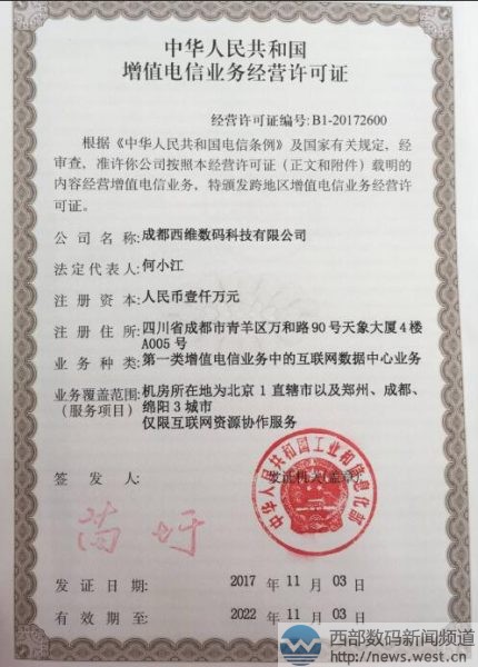 繼公有云通過(guò)評(píng)估后,西部數(shù)碼再獲工信部全國(guó)云服務(wù)牌照