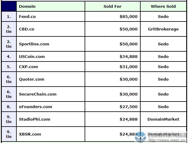 來源西部數(shù)碼新聞資訊,原文鏈接:國別域名大出風頭:feed.co和CBD.co六位數(shù)領跑DN榜!