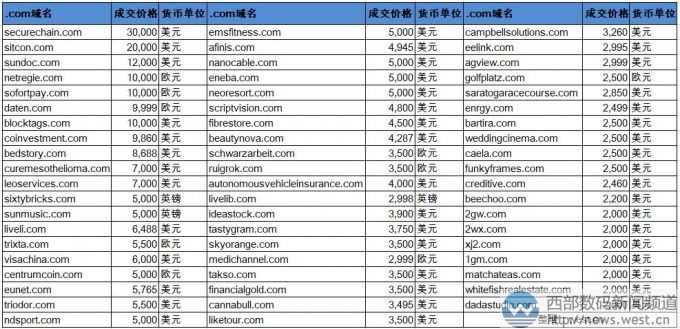 除此以外,.com域名方面成交價在五位數(shù)美元以上的還有netregie.com(潛在終端有IT公司Netregie)、softotpay.com(軟支付)、daten.com、blocktags.com(塊標(biāo)記符)。