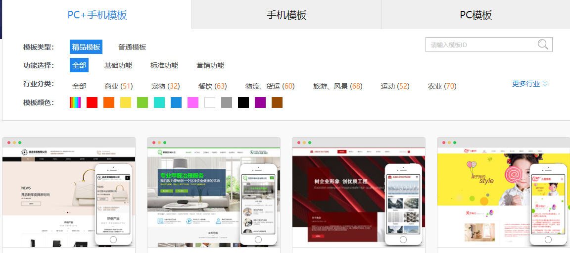 其中默認(rèn)是PC+手機(jī)模板,如果您只需要PC站或者只需手機(jī)站,可切換為對(duì)應(yīng)的版本,再選擇模板,價(jià)格會(huì)有下調(diào)。 注意:如圖的網(wǎng)店模板是比較特殊的一類,適用于商城網(wǎng)站,僅支持主機(jī)版本為營銷版的主機(jī)
