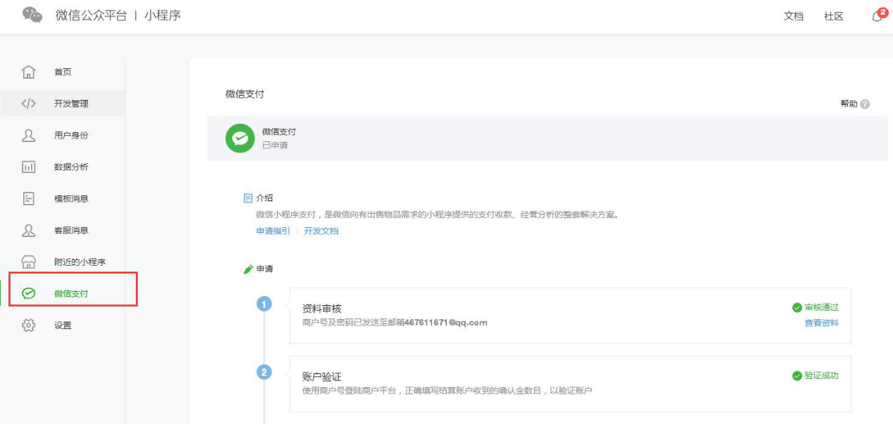 3.微信支付(無需線上支付功能跳過該章節(jié))3.1申請微信支付如您使用商城類等涉及線上支付小程序,需申請主體認證,通過后即可申請微信支付。個人小程序暫不支持申請微信支付