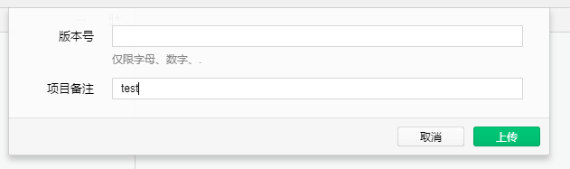 上傳代碼包時,需要填寫版本和項目備注,版本號可以根據(jù)實際需要填寫,建議與平臺版本號同步,項目備注可以填寫修改內(nèi)容
