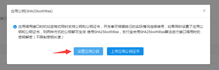 需要注意,小程序應(yīng)用私鑰等信息生成后需要自行妥善保存,一旦遺失可能需要重新生成,可能會(huì)影響已發(fā)布小程序的正常使用。 1.3支付寶公鑰獲取支付寶公鑰需要在支付寶小程序后臺(tái)——設(shè)置——開(kāi)發(fā)設(shè)置中獲取。點(diǎn)擊接口加簽方式中的設(shè)置應(yīng)用公鑰,選擇“設(shè)置應(yīng)用公鑰”。設(shè)置時(shí),需要校驗(yàn)支付寶賬號(hào),可以通過(guò)短信驗(yàn)證或者支付密碼驗(yàn)證。