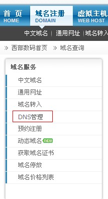 以下講解下設置方法: 1、首先,用您自己的會員賬號登陸我司網(wǎng)站,點擊域名注冊,然后點擊左側的“DNS管理”。