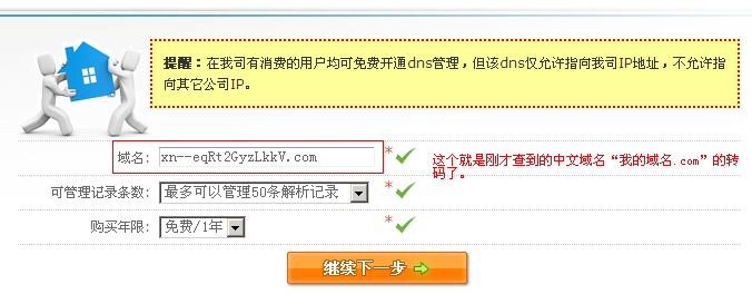 查詢后顯示: 您輸入的域名串是: 我的域名.com 經(jīng)過轉(zhuǎn)碼后變成了: xn--eqRt2GyzLkkV.com