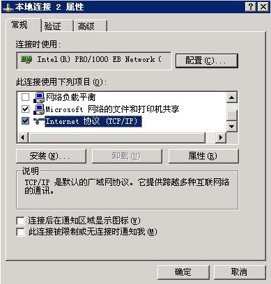 打開(kāi)本地連接(win2003右鍵本地連接--屬性),選擇tcp/ip協(xié)議