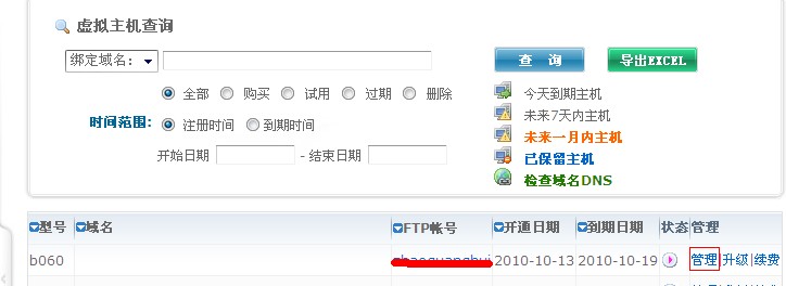 然后在右側(cè)選擇您的虛擬主機,點管理