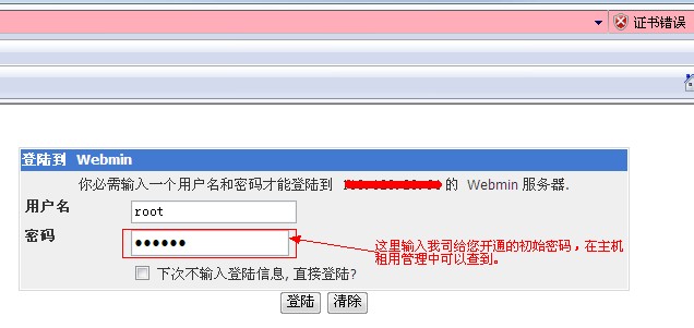 2、登錄頁面輸入賬號root,密碼就是您VPS或者服務器的初始密碼(可以在業(yè)務管理—主機租用管理查到)登錄,如圖: