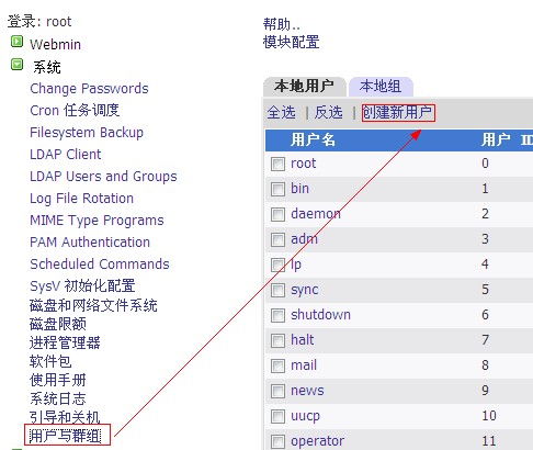 4、接下來開始建立用戶: a、 首先建立用戶,點擊左側的“系統”—“用戶與群組”,然后點擊右側的“創(chuàng)建新用戶”如圖: