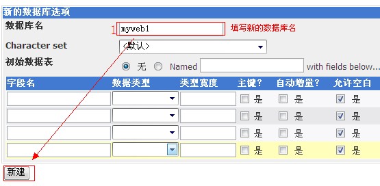 b、 填寫數據庫名,選擇編碼格式,一般選擇“默認”或者是指定其中一種編碼,如圖: