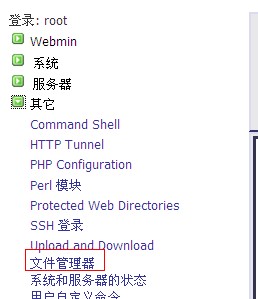 webmin文件管理器功能詳解webmin里的文件管理器有著強大的功能,為了方便不熟悉linux命令的用戶操作linux,在此對文件 管理器做一個詳細的介紹。 文件管理器功能需要java虛擬機支持,若您的webmin無法顯示,請下載微軟的java虛擬機,下載地址:http://www.java.com/zh_CN/download/windows_ie.jsp?locale=zh_CN 一、webmin文件管理器圖標介紹: 1、 2、 方便備份。 3、 4、 5、 6、 的子目錄。 7、 8、 9、 10、 11、 12、 13、 14、 包。 15、 16、 17、 18、 19、 20、 21、 22、 23、 二、 使用webmin上傳壓縮包并解壓,請確定您的壓縮包是zip或者tar或者tar.gz格式。1、點擊左側(cè)的“其他”--“文件管理器”,如圖: 2、選擇您需要上傳的文件夾位置,點擊上傳按鈕,如圖:
