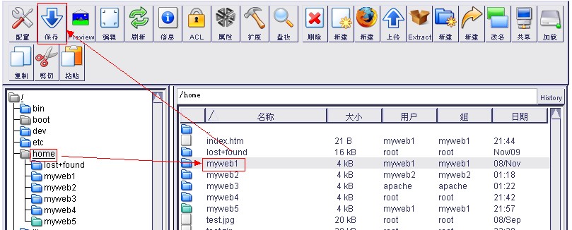 設(shè)置后刷新下,再查看用戶和組,都變成了myweb1。