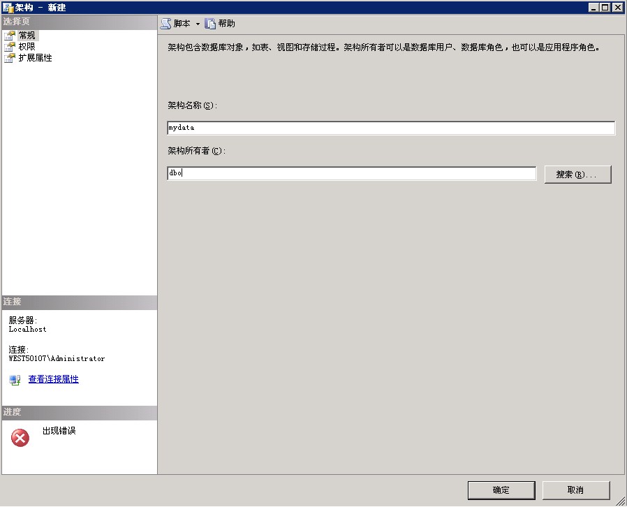 新建一個所有者為dbo的mydata架構(gòu),如圖: