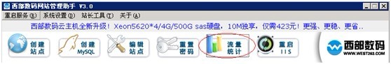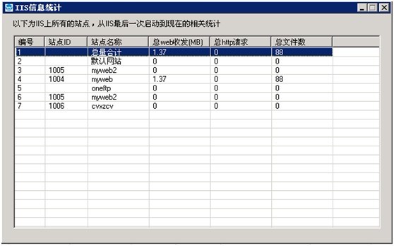 如果要查看IIS里每個站點的流量情況,可以打開網(wǎng)站管理助手,點擊“流量統(tǒng)計”,如圖: