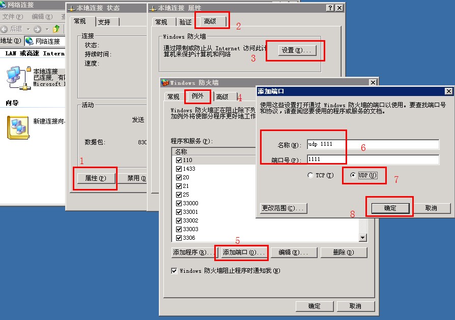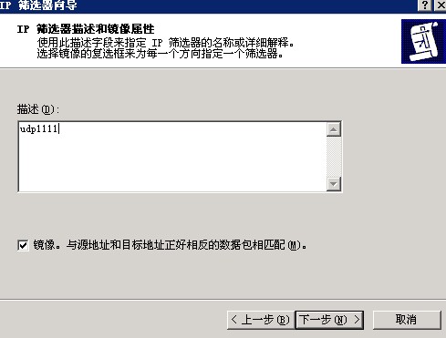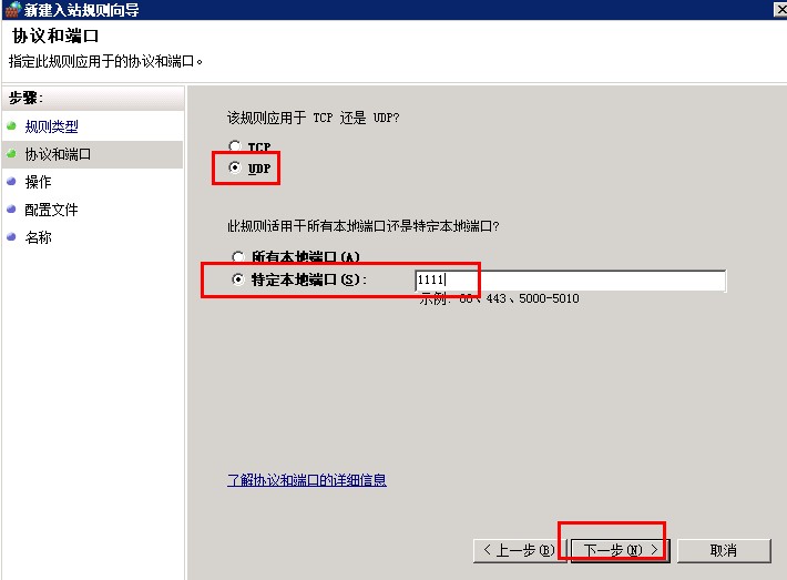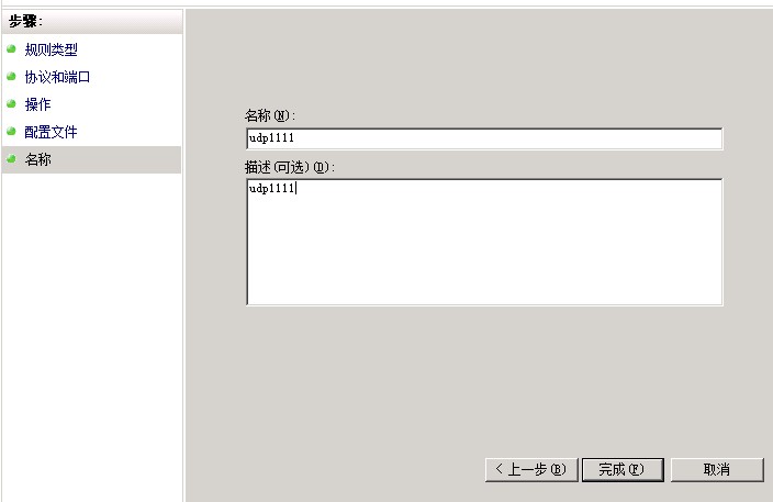 然后全部默認下一步,名稱就填寫udp名 有些用戶的服務(wù)器端口是在TCP/IP端口篩選里面,如果是啟用的篩選,請注意在篩選里面去放行端口。