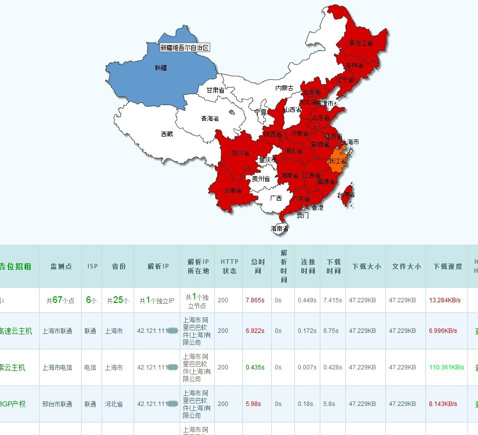 下面幾則圖例可以充分說(shuō)明,17ce上測(cè)試出來(lái)狀況是否良好,跟主機(jī)的帶寬有直接關(guān)系!即使是阿里云機(jī)房或我們提供的北京BGP機(jī)房,如果帶寬很低,同樣測(cè)試出來(lái)的效果很差。 用西部數(shù)碼智能多線(xiàn)機(jī)房2M帶寬測(cè)試出來(lái)全線(xiàn)飄紅的問(wèn)題,在您升級(jí)為10M或更多帶寬的情況下,就可能實(shí)現(xiàn)很好的測(cè)試效果。但如果換為我們的北京BGP機(jī)房仍是2M帶寬,同樣測(cè)試效果會(huì)不理想。