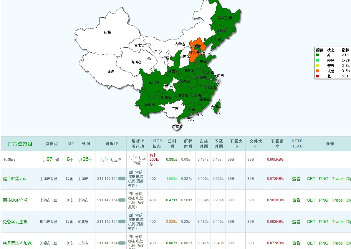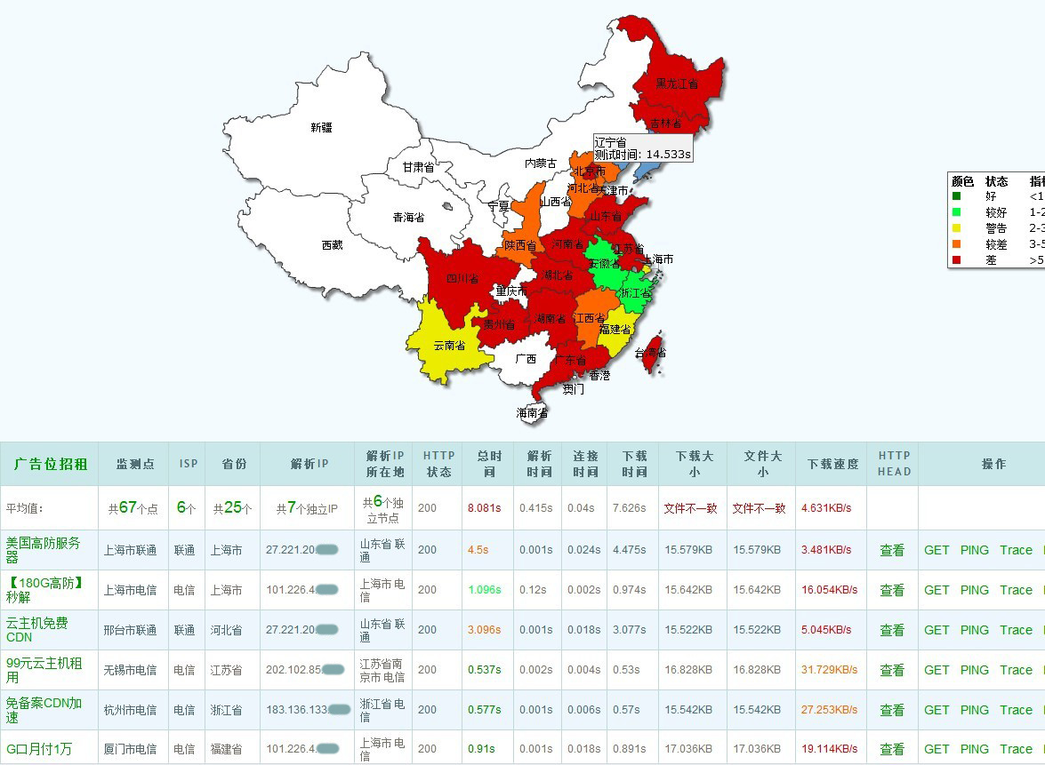 另外測(cè)試中出現(xiàn)一個(gè)現(xiàn)象:同樣是2m的主機(jī),首次測(cè)出來(lái)很差,但稍后再測(cè)的時(shí)候就全線(xiàn)變綠了,這可能跟17ce的服務(wù)器有了緩存的原因。
