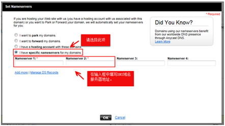 nameserver1,nameserver2為必填項(xiàng),其他為選填項(xiàng),如果只設(shè)置西部數(shù)碼dns記錄6條可選中的兩條也是可以的。 godaddy域名dns修改一般約72小時(shí)生效。