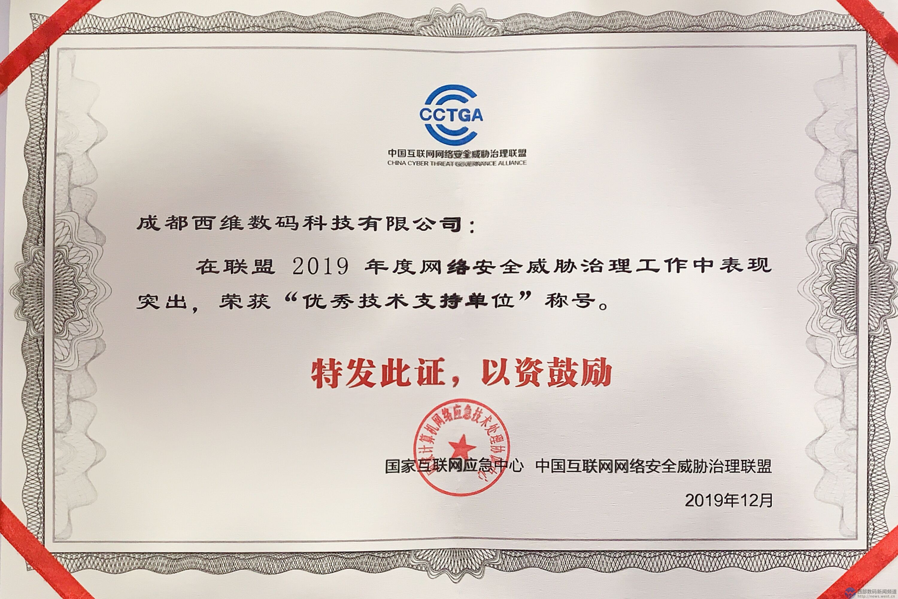 西部數(shù)碼榮獲2019中國互聯(lián)網(wǎng)網(wǎng)絡(luò)安全威脅治理聯(lián)盟“優(yōu)秀技術(shù)支持單位”稱號